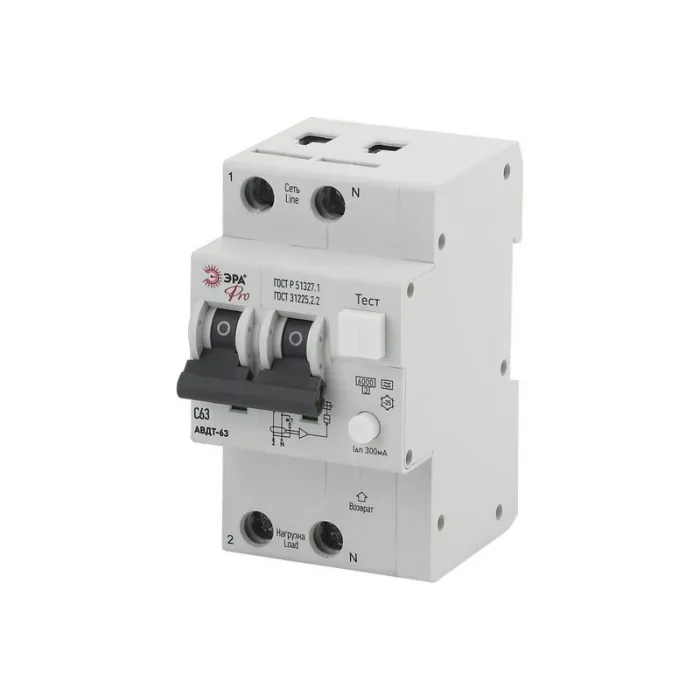 Дифавтомат Эра АВДТ 63 1Р+N С63А 300мА 6кА тип А, Б0031867, Нижний Новгород