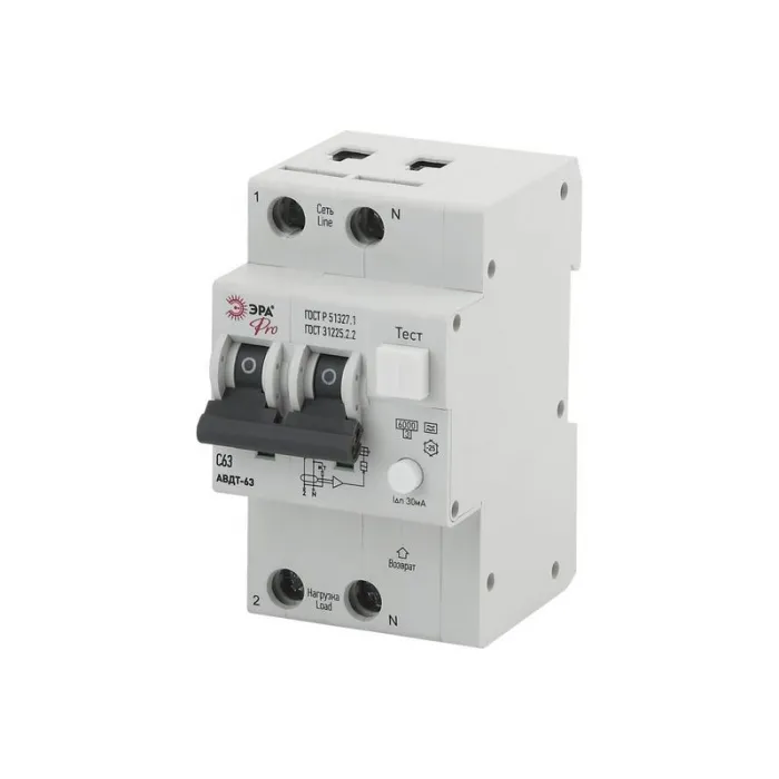 Дифавтомат Эра АВДТ 63 1Р+N С63А 30мА 6кА тип А, Б0031855, Нижний Новгород