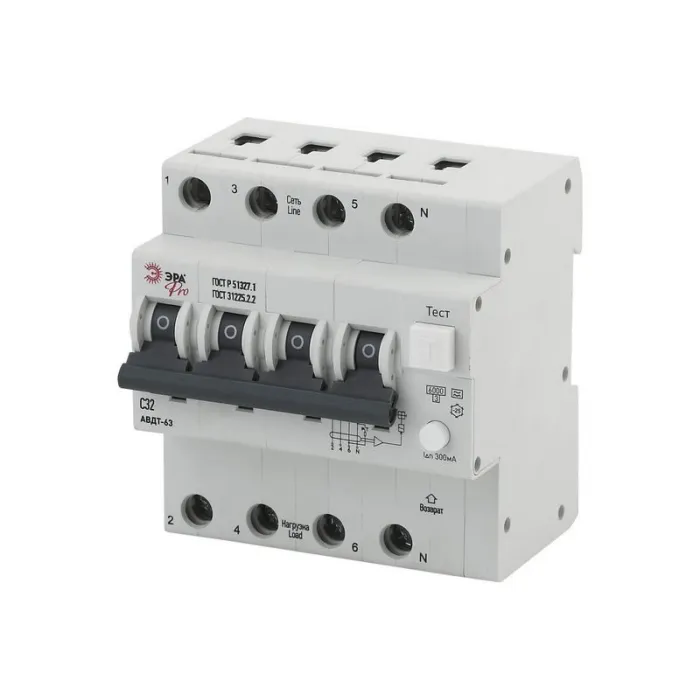 Дифавтомат Эра АВДТ 63 3Р+N С32А 300мА 6кА тип А, Б0031873, Нижний Новгород