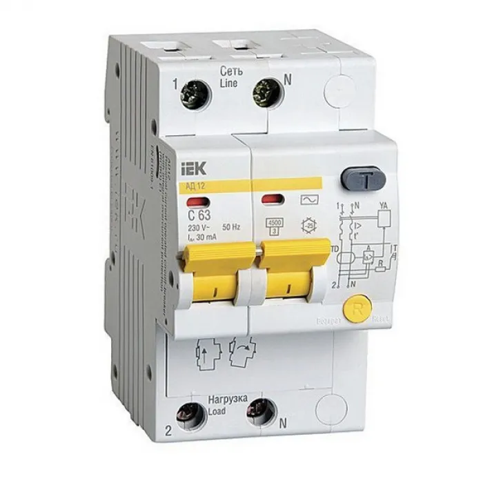 Дифавтомат IEK АД12S 2P 63А (C) 4.5 кА, 100 мА ( AC ), MAD13-2-063-C-100, Нижний Новгород
