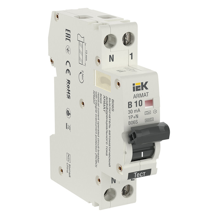 Все эти характеристики делают дифавтомат IEK ARMAT 2P 10А (B) 6 кА, (A), AR-B06S-1N-B10A030 надежным и эффективным средством защиты электрических цепей от перегрузок и коротких замыканий.