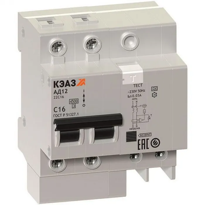 Дифавтомат КЭАЗ АД12 2P 25А (C) 4.5 кА, 30 мА ( AC ), 141587, Нижний Новгород