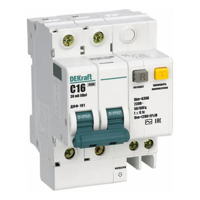 Дифавтомат DEKraft ДИФ-101 2P 25А ( C ) 4.5 кА, 30 мА ( AC ), 15150DEK - это электрическое устройство, предназначенное для защиты электрической сети от перегрузок и коротких замыканий. Он имеет два полюса и номинальный ток 25А. Дифавтомат обеспечивает защиту от токов перегрузки до 4.5 кА и от токов короткого замыкания до 30 мА (переменного тока). Модель 15150DEK предлагает надежную и эффективную защиту электрической системы.