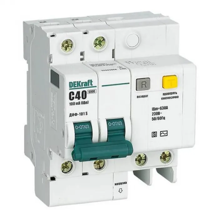 Дифавтомат DEKraft ДИФ-101 2P 40А (C) 6 кА, 100 мА (S), 15302DEK - это надежное и эффективное устройство, которое обеспечивает безопасность и защиту электрических сетей от перегрузок, коротких замыканий и утечек тока.