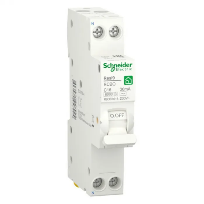 Дифавтомат Schneider Electric Resi9 1P+N 16А ( C ) 6 кА, 30 мА ( AC ), R9D87616 идеально подходит для использования в системах электропитания жилых помещений, обеспечивая безопасность и надежность электроснабжения.