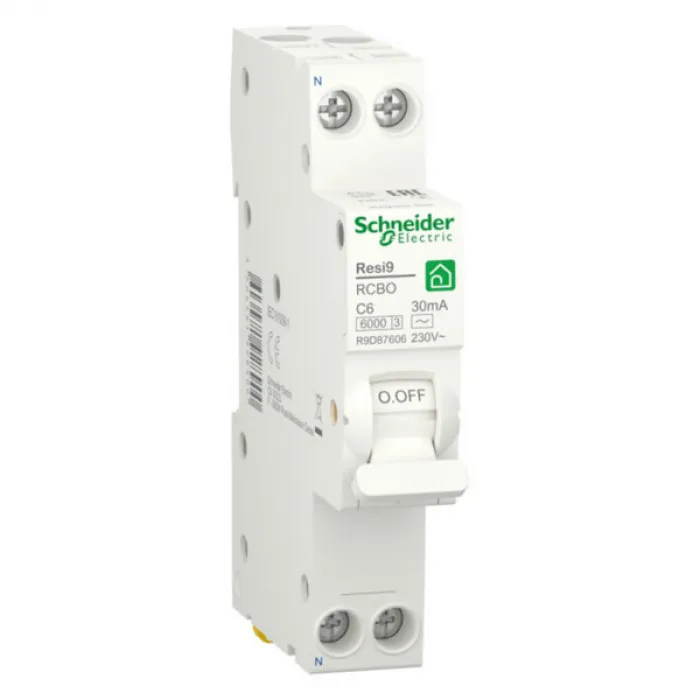 Дифавтомат Schneider Electric Resi9 1P+N 6А (C) 6 кА, 30 мА (AC), R9D87606 соответствует самым высоким стандартам качества и безопасности, что делает его надежным выбором для обеспечения защиты вашего дома от электрических неполадок.