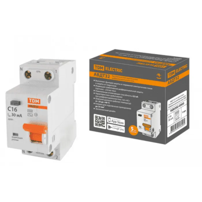 Дифавтомат TDM АВДТ 32 2P 25А (C) 4,5кА 30мА, SQ0202-0505, Нижний Новгород