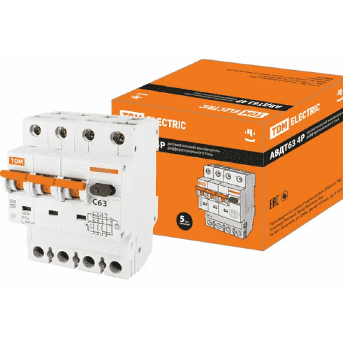 Дифавтомат TDM Electric АВДТ 63 3P+N 63А (C) 6 кА, 300 мА ( A ), SQ0202-0057, Нижний Новгород