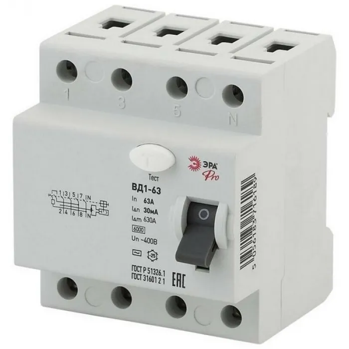 УЗО (устройство защитного отключения) ЭРА ВД1-63 электромеханическое – это высококачественное и надежное устройство, предназначенное для обнаружения и автоматического отключения электрической цепи в случае возникновения утечки тока.