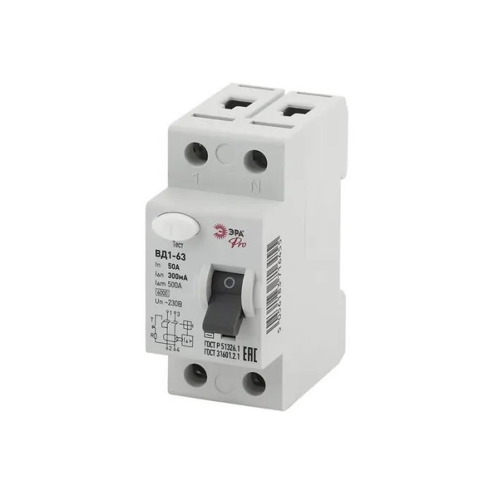 УЗО ЭРА ВД1-63 электромеханическое 1Р+N 50А 300мА тип АС, Б0031909, Нижний Новгород