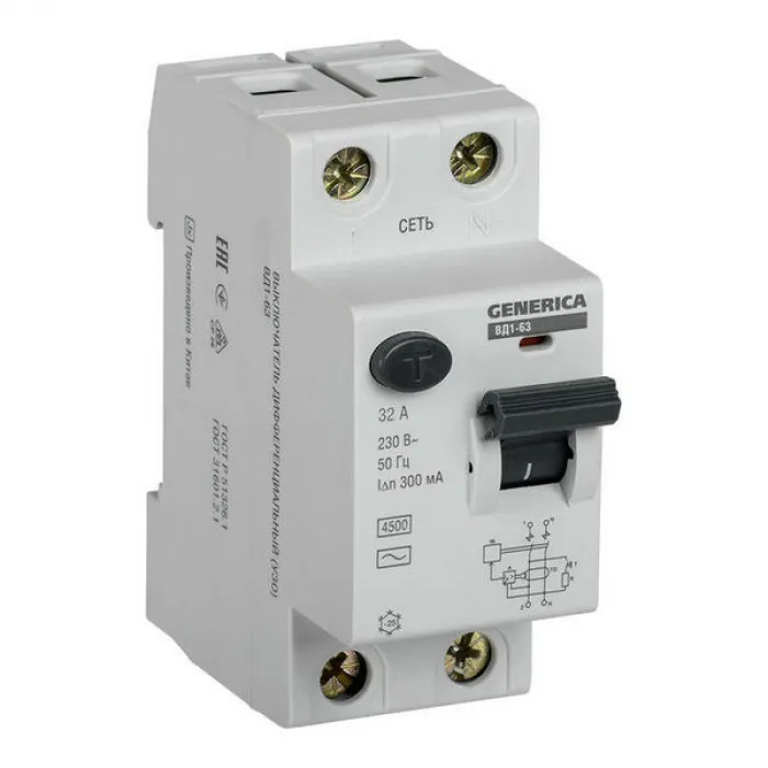 УЗО IEK GENERICA 2P 32А, 300 мА ( AC ), MDV15-2-032-300, Нижний Новгород