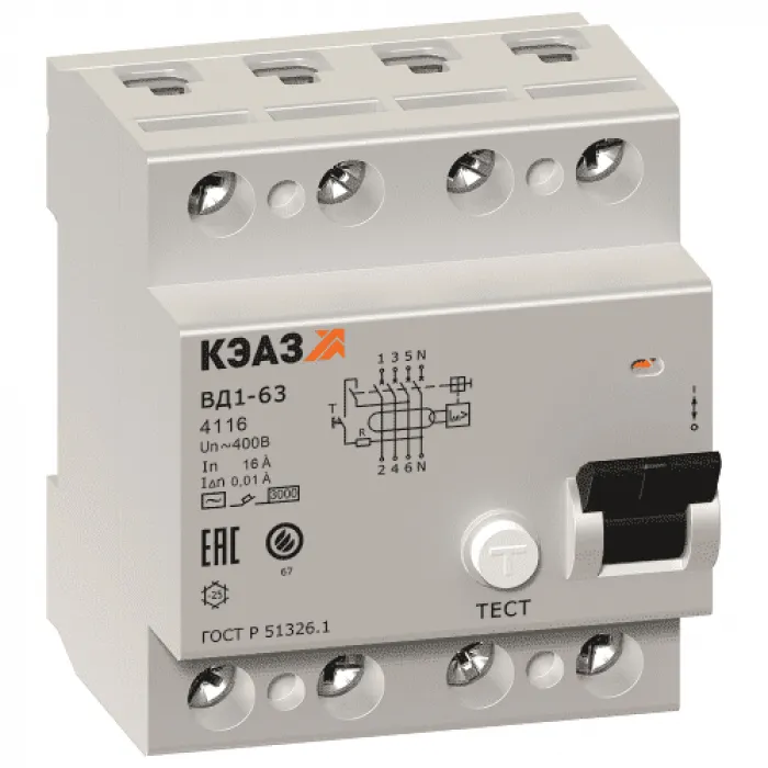 УЗО КЭАЗ ВД1-63 4P 16А 30мА (AC), 221946, Нижний Новгород