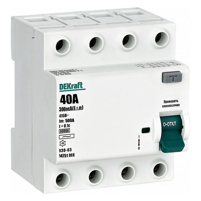 УЗО DEKraft УЗО-03 4P 40А 6 кА, 300 мА (AC), 14251DEK, Нижний Новгород