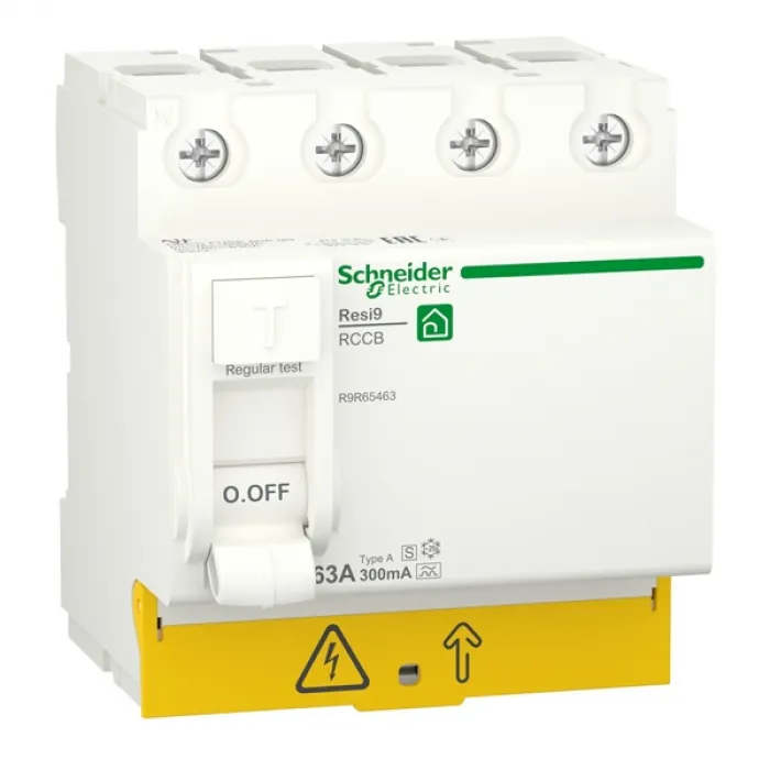 УЗО Schneider Electric Resi9 4P 63А, 300 мА ( A S ), R9R65463 - это надежный и безопасный выбор для обеспечения защиты электрических сетей и оборудования в вашем доме или офисе.