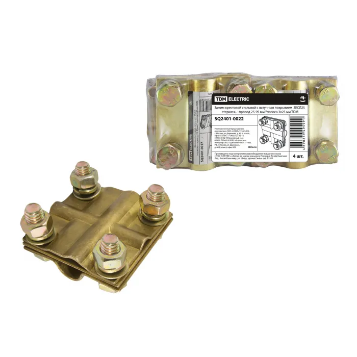 Зажим крестовой ЗКСЛ25 стержень - провод 25-95мм2/полоса 3х25мм TDM, Нижний Новгород