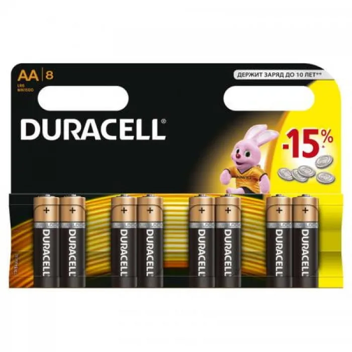 Батарейка Duracell MN1500/LR6 BP8 (кратно 8) - это надежный и долговечный источник питания для различных устройств. Упаковка содержит 8 штук батареек типоразмера AA, которые идеально подходят для использования в пультов управления, фонариках, игрушках, камерах и других устройствах. Duracell - известный бренд, который славится своим качеством и длительным сроком службы. Благодаря этим батарейкам вы можете быть уверены, что ваши устройства будут работать стабильно и долго.