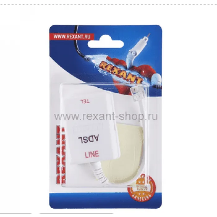Rexant 06-0103-BФильтр ADSL включается между телефонным аппаратом и телефонной линией. Он фильтрует высокочастотные и импульсные наводки, которые генерируются телефоном, а также обеспечивает оптимальное согласование телефона с линией.