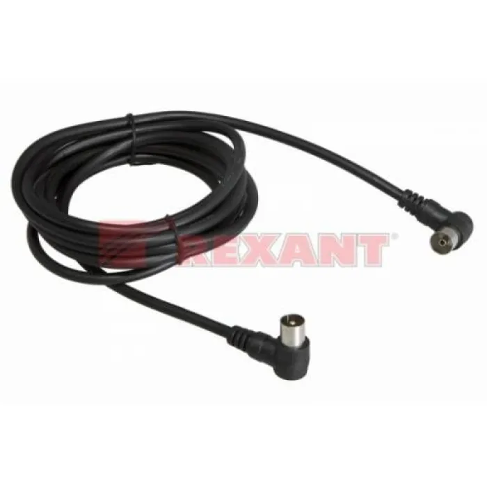 Шнур TV PLUG - TV JACK 1.5М Угловой Черный REXANT - отличный выбор для тех, кто ценит качество передачи сигнала и надежность соединения между устройствами.