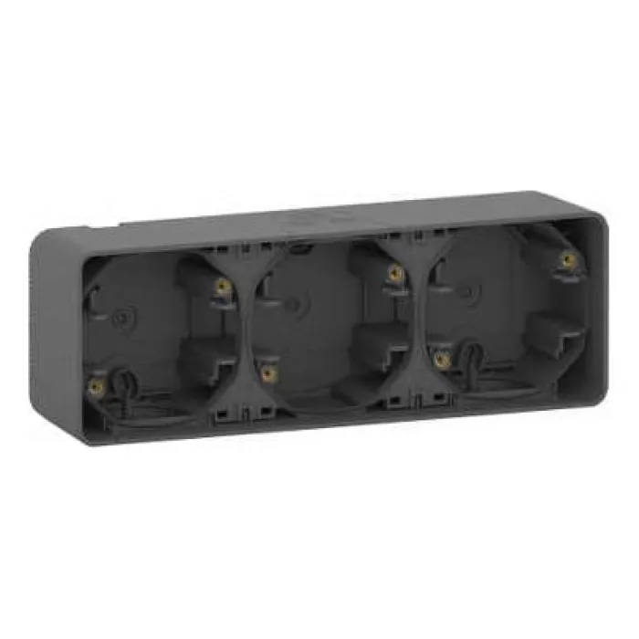 MUREVA S, 3-х ПОСТОВОЙ БОКС для накл. монтажа, АНТРАЦИТ, IP55. тип устройства или его аксессуаров: короб для установки на поверхности. Преимущества: Работоспособность: Пыле-влагозащита по стандарту IP55 означает, что Mureva Styl защищена от попадания воды и пыли внутрь механизмов... Простота установки: Монтаж Mureva Styl достаточно прост благодаря продуманному дизайну креплений.