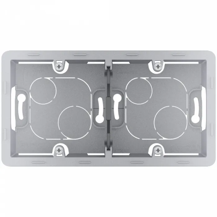 Коробка накладного монтажа - 2 поста - INSPIRIA - алюминийКоробка накладного монтажа INSPIRIA предназначена для установки на стену или потолок и обеспечивает удобное подключение электрических устройств. Изготовлена из высококачественного алюминия, что обеспечивает прочность и долговечность изделия.