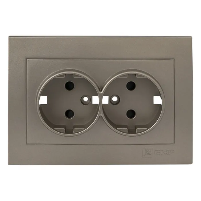 Накладка на розетку двойную EKF ВАЛЕНСИЯ, скрытый монтаж, с заземлением, со шторками, кашемир, ESR16-L-128-40, Нижний Новгород
