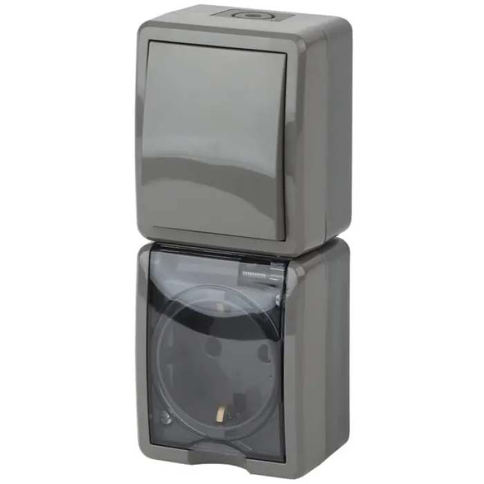 11-7407-03 ЭРА Блок розетка+выкл. верт. IP54, 16A(10AX)-250В, ОУ, Эра Эксперт, серый, Нижний Новгород