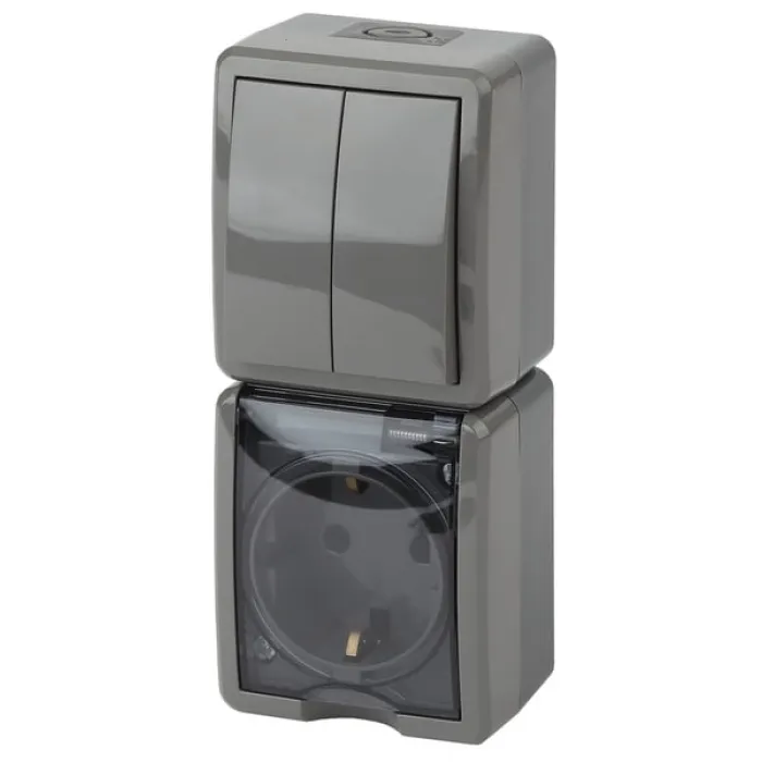 11-7408-03 ЭРА Блок розетка+выкл. двойн. верт. IP54, 16A(10AX)-250В, ОУ, Эра Эксперт, серый, Нижний Новгород