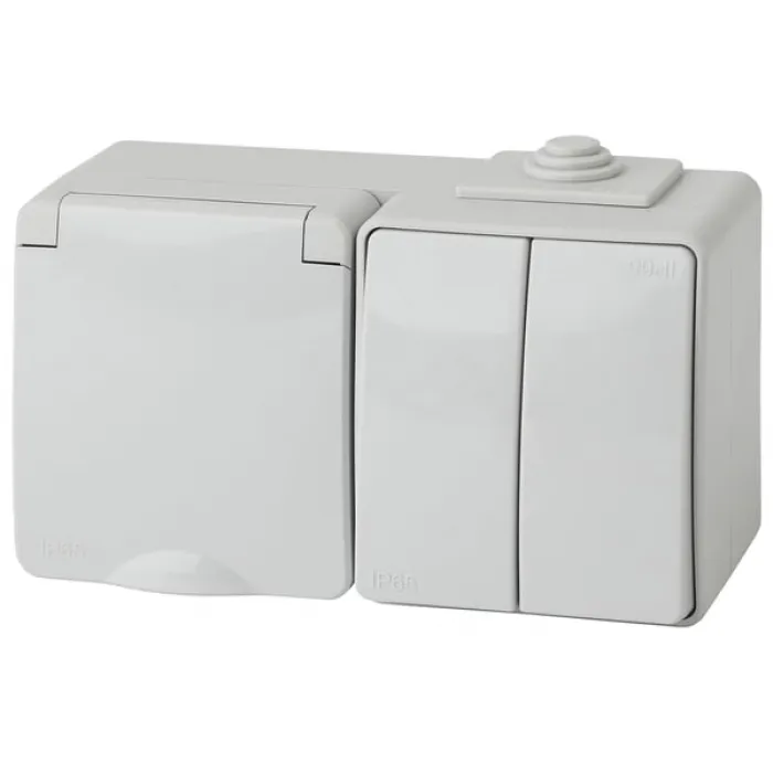 11-7602-03 ЭРА Блок розетка+выкл. двойн. гориз. IP65, 16A(10AX)-250В, ОУ, Эра Эксперт, серый - это продукт, который представляет собой комбинированный блок розетки и выключателя, предназначенный для использования внутри и вне помещений.Этот блок розетки+выключателя имеет двойное горизонтальное расположение, что позволяет установить две розетки и два выключателя в одном блоке.