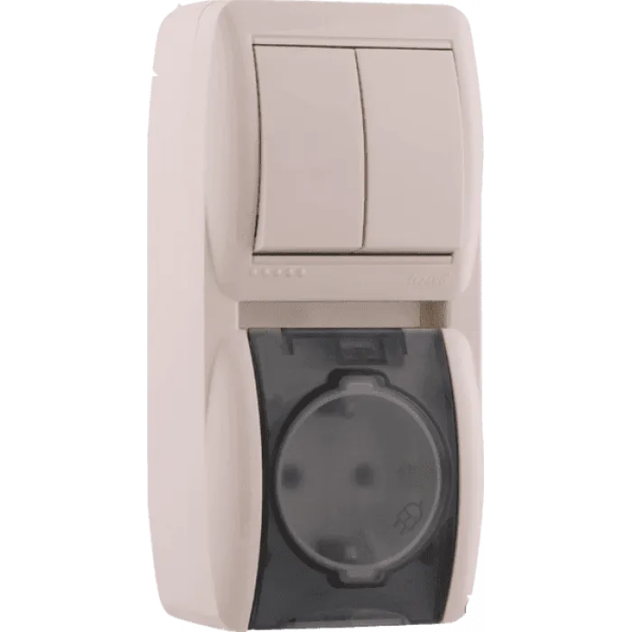 Блок комбинированный Lezard Nata выключатель 2-клавишный и розетка с заземляющими контактами с крышкой, кремовый вертикальный 710-0300-173, Нижний Новгород