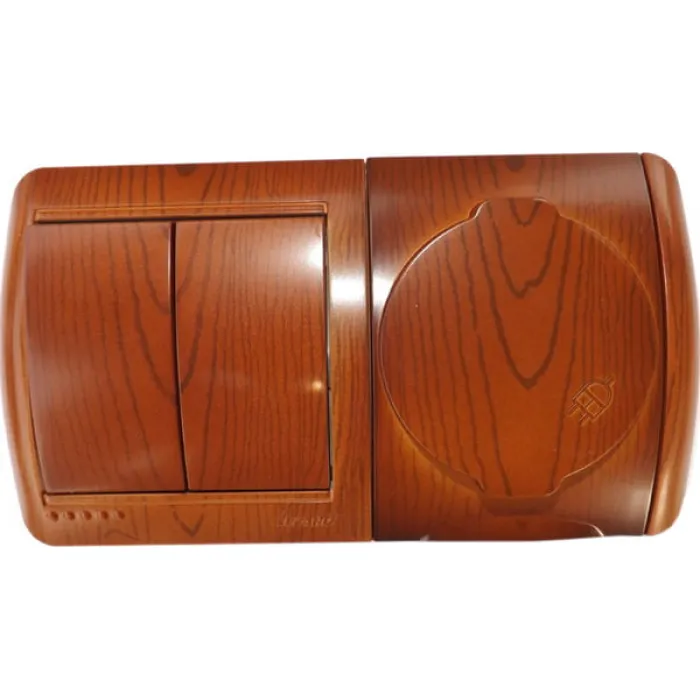 Блок комбинированный Lezard Nata выключатель 2-клавишный и розетка с заземляющими контактами с крышкой, цвет вишня горизонтальный 710-0600-171, Нижний Новгород