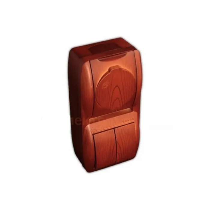 Lezard NATA - это высококачественный вертикальный блок, предназначенный для установки на стену. Он оснащен 2-х клавишным выключателем и розеткой с заземлением.Выключатель и розетка выполнены в стильном дизайне соснового цвета и имеют защитную крышку, которая обеспечивает безопасность и защиту от пыли и влаги.
