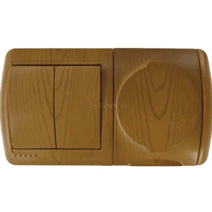 Lezard NATA Выключатель и розетка с/з, с крышкой, ольха, горизонтальный блок 710-0700-170, Нижний Новгород