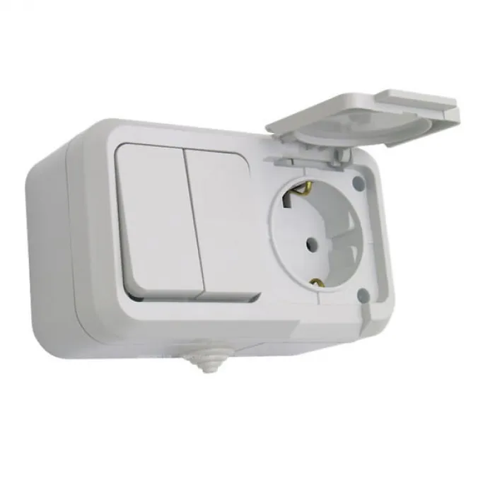 Выключатель Makel 2-клавишный белый+розетка с крышкой ПГ ОП 18351, Нижний Новгород