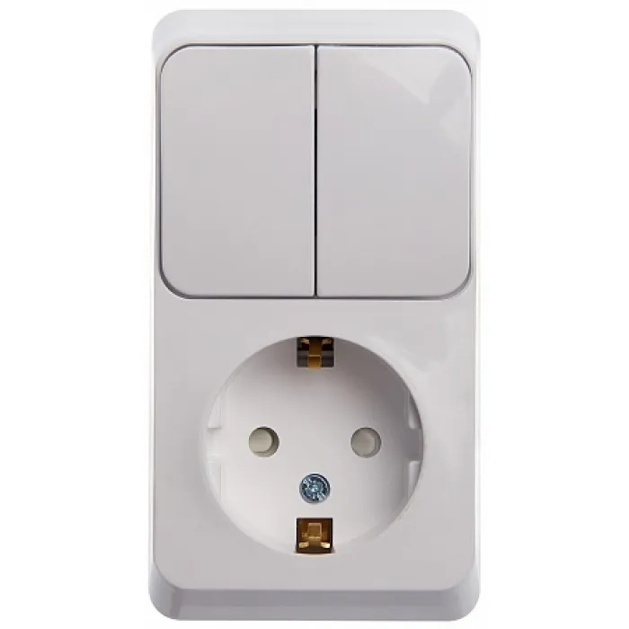 Блок комбинированный Schneider Electric Этюд О/У: розетка с заземлением со шторками + выключатель 2-клавишный, белый, BPA16-202B, Нижний Новгород