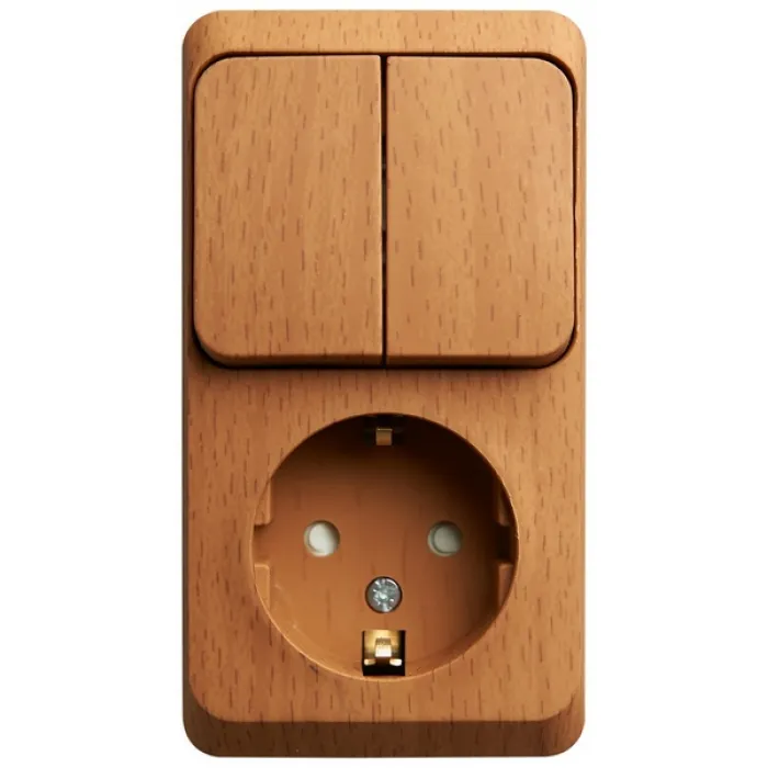 Блок комбинированный Schneider Electric Этюд О/У: розетка с заземлением со шторками + выключатель 2-клавишный, бук, BPA16-201T, Нижний Новгород