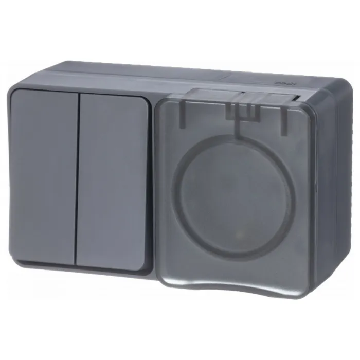 Блок: розетка 2Р+Е шторки 16А + 2-к выкл.10А открытой установки IP54 SE AtlasDesign Profi54,антрацит, Нижний Новгород