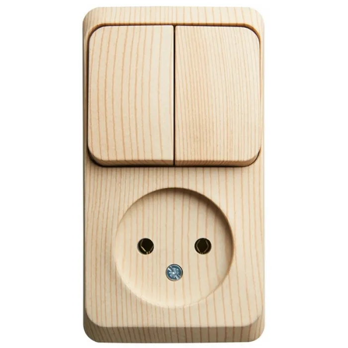 Блок розетка Schneider Electric Этюд О/У без заземления + выключатель 2-клавишный, сосна BPA16-205D, Нижний Новгород