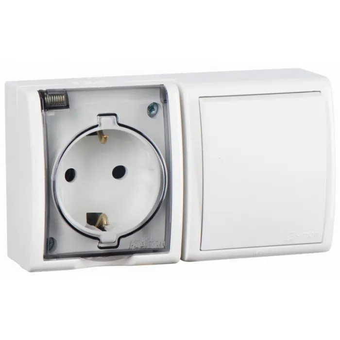 Блок розетка 2P+E 16А 250В + выключатель 10А 250В Simon 15 Aqua IP54 белый, Нижний Новгород