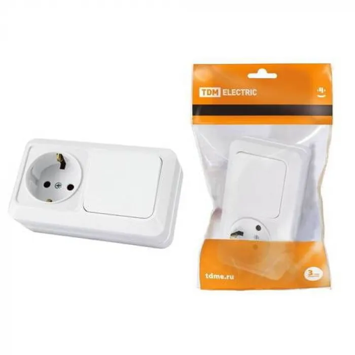 Блок комбинированный выкл. 1-кл. 10А + розетка 2П+З 16А 250В БКВР IP20 белый Ладога TDM, Нижний Новгород