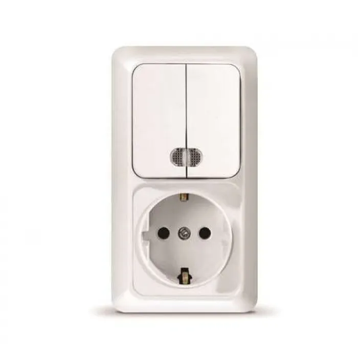 Блок комбинированный UNIVersal Олимп 2-клавишный с подсветкой + 1-местная евро с заземляющими контактами 16А 220В вертикальный белый О0041, Нижний Новгород