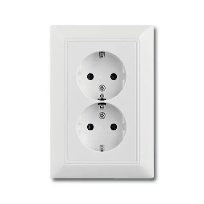 Розетка двухместная ABB BASIC55, скрытый монтаж, с заземлением, со шторками, альпийский белый, 2CKA002021A0378, Нижний Новгород