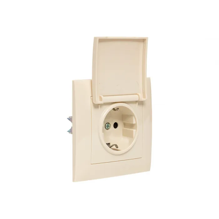 Розетка 1-м СП Валенсия 16А с заземл. с крышкой защ. шторки крем. PROxima EKF EWV10-124-20, Нижний Новгород