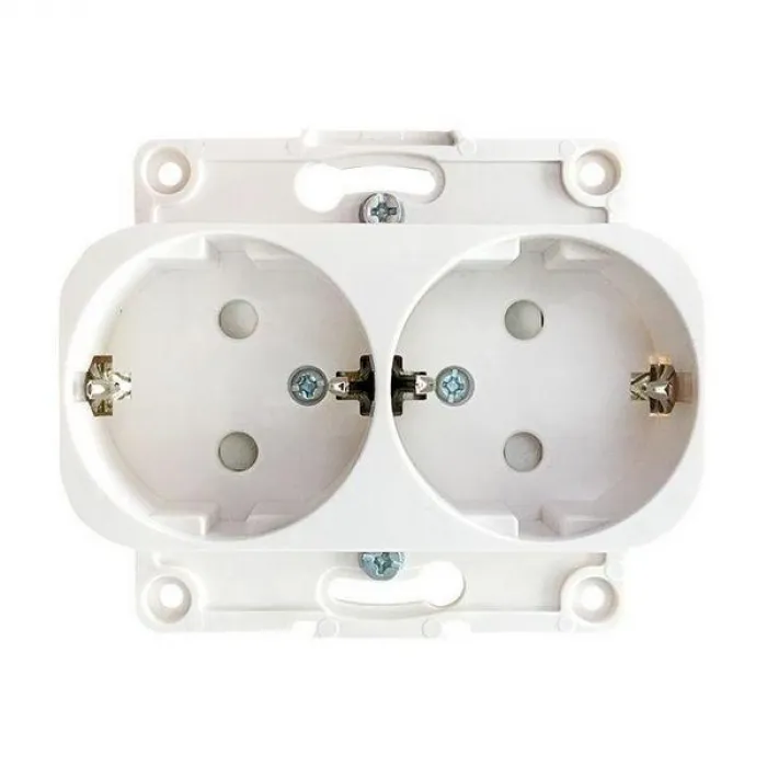 Розетка двойная EKF СТОКГОЛЬМ, скрытый монтаж, с заземлением, со шторками, белый, EYR16-128-10, Нижний Новгород