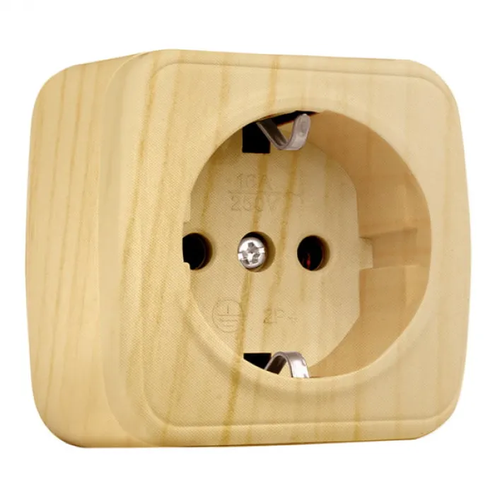 Розетка EKF МИНСК, открытый монтаж, с заземлением, светлое дерево, EGR16-028-30, Нижний Новгород