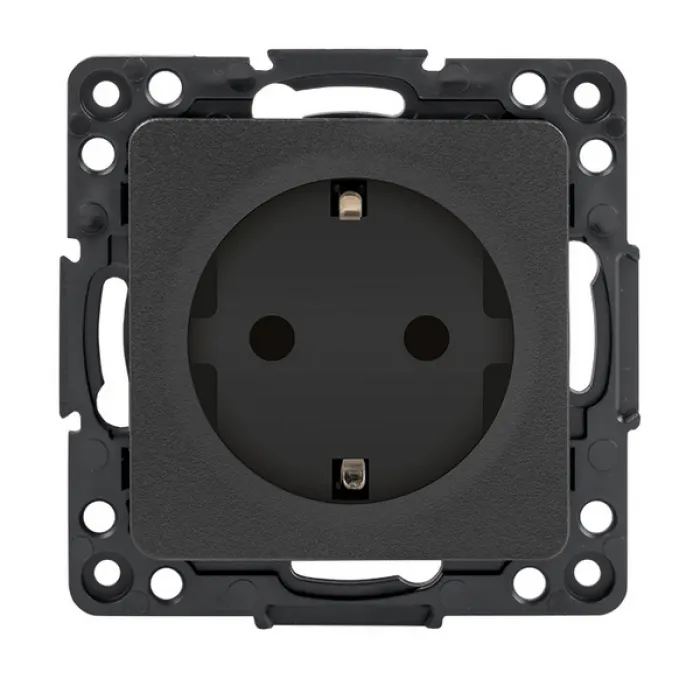 Розетка EKF СТОКГОЛЬМ, скрытый монтаж, с заземлением, со шторками, черный, EZR16-028-10, Нижний Новгород