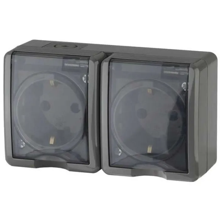 11-2403-03 ЭРА Розетка 2х2P+E IP54, 16A-250В, ОУ, Эра Эксперт, серый - это продукт, представляющий собой розетку с двумя гнездами и двумя заземляющими контактами, предназначенную для использования внутри помещений с защитой от пыли и брызг воды (класс защиты IP54). Розетка имеет максимальную нагрузку 16А при напряжении 250В.Продукт оснащен охранно-управляющим устройством (ОУ), которое обеспечивает безопасность и контроль работы розетки.