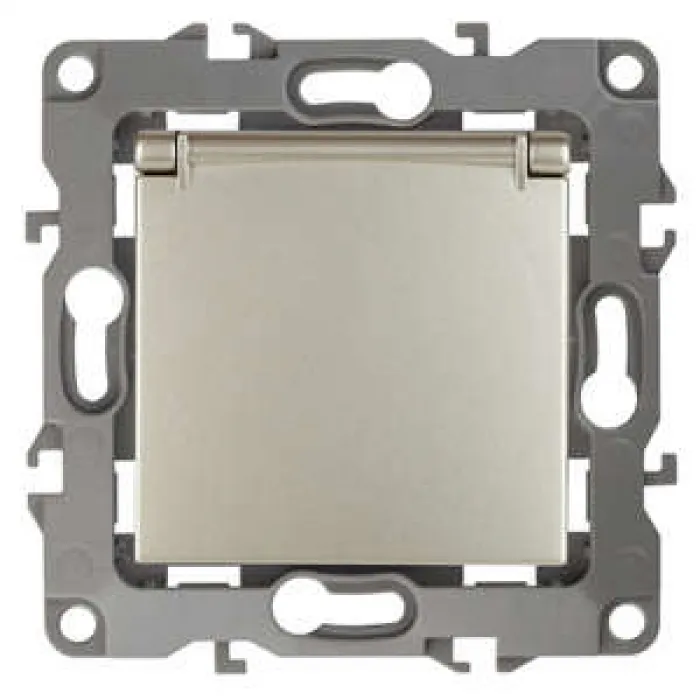 12-2103-04 ЭРА Розетка 2P+E Schuko со шторками с крышкой, 16A-250В, IP20, Эра12, шампань, Нижний Новгород