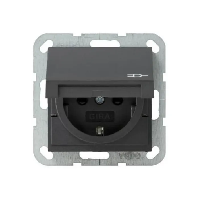 Розетка Gira SYSTEM 55, скрытый монтаж, с заземлением, с крышкой, антрацит, 045428, Нижний Новгород
