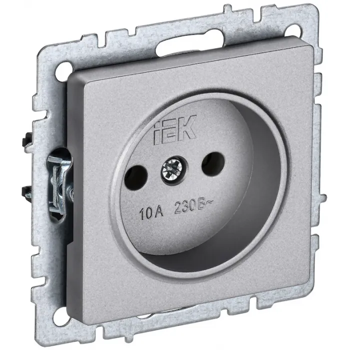 Розетка 1-местная без заземления IEK BRITE 10А РС10-1-0-БрА алюминий, BR-R10-10-K47, Нижний Новгород