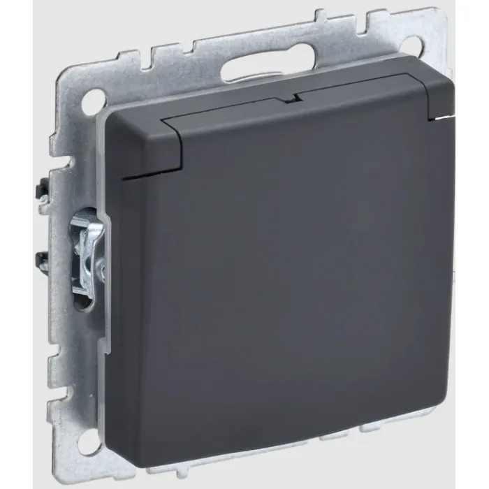 Розетка 1-местная с заземлением с защитными шторками IEK BRITE 16А IP44 РСбш10-3-44-БрГ графит, BR-R16-16-44-K53, Нижний Новгород